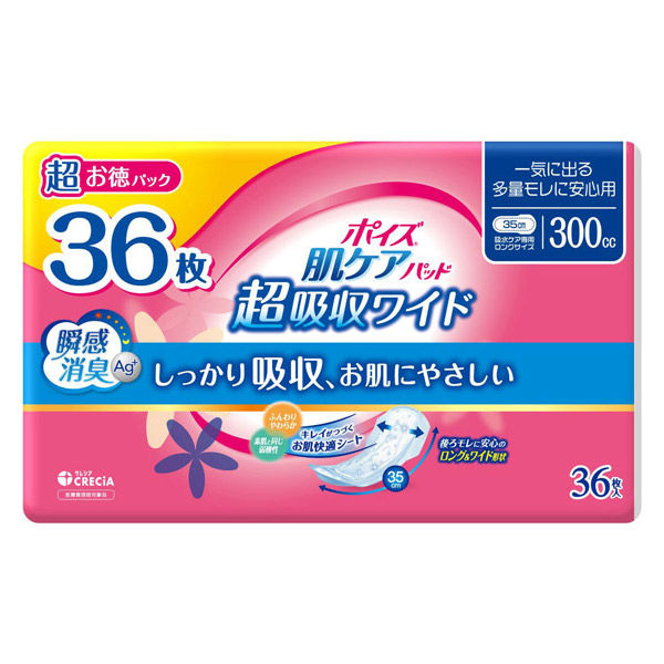 本商品:軽失禁 吸水パッド 尿もれ ポイズ 肌ケアパッド 超吸収ワイド 36枚入 1個 日本製紙クレシア