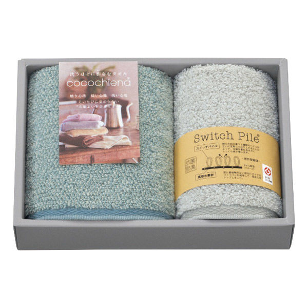 - 34×80cmフェイスタオル1枚・34×35cmウォッシュタオル1枚・綿93%・ポリエステル7%