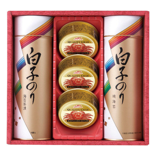 | 商品の特徴 | 食卓を豪華に彩る、海苔とのり茶漬け、かに缶の詰合せギフトです。 | ||