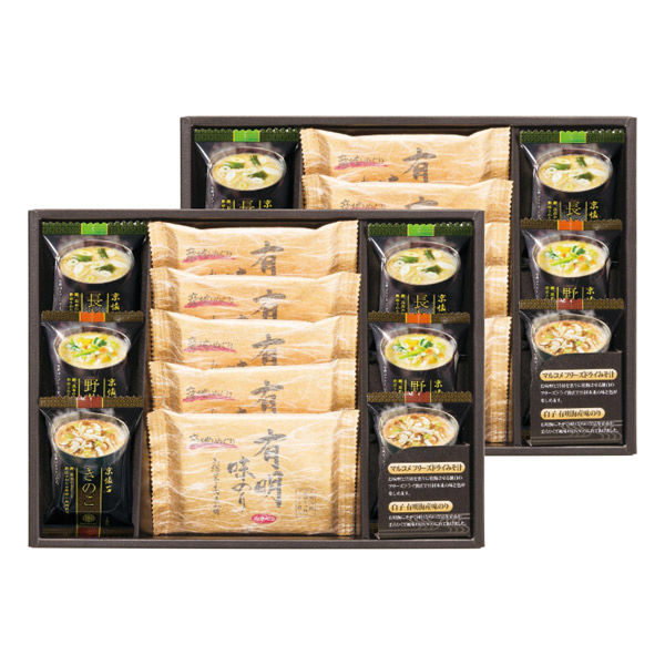商品の特徴 お湯を注ぐだけで本格的な味わいのマルコメフリーズドライ味噌汁と、白子有明海産味のり詰合せです。