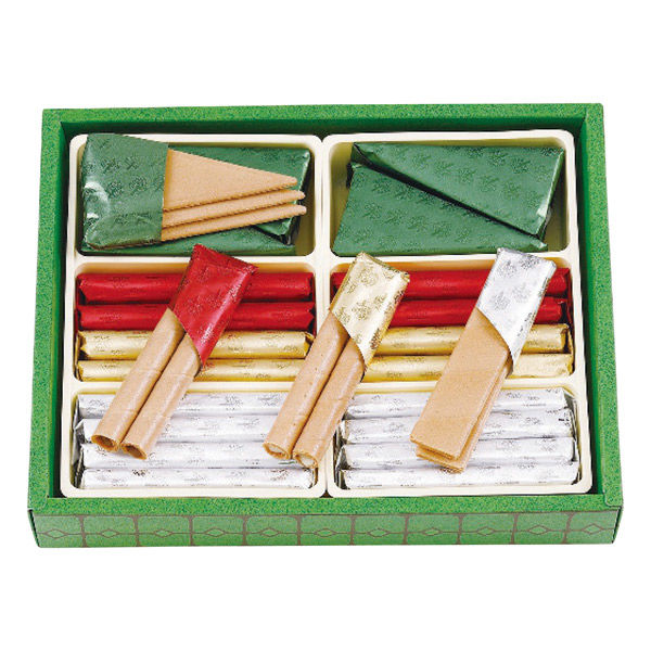 | 賞味期限表示 | 製造日より常温約180日 | 商品仕様 | エコルセ三角8包(24枚)・短冊8包(16枚)・丸型(ミルクチョコレート・ホワイトチョコレート)各4包(各8本) |