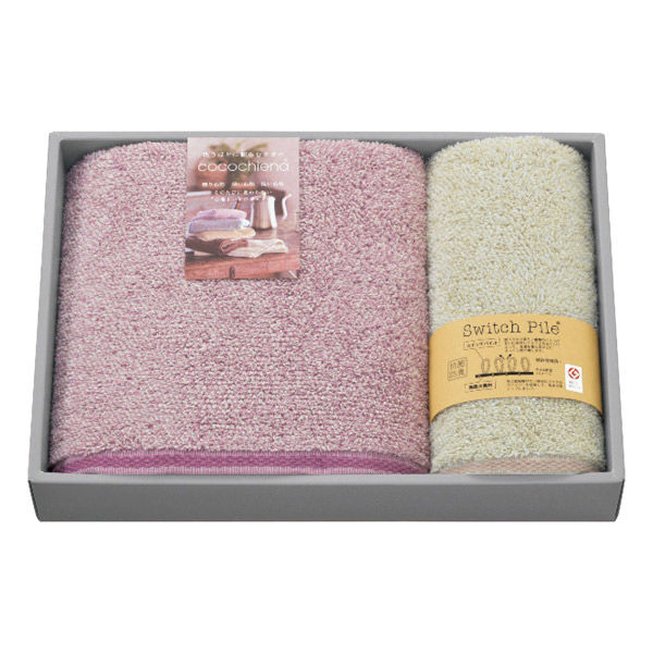 - 60×120cmバスタオル1枚・34×80cmフェイスタオル1枚・綿93%・ポリエステル7%