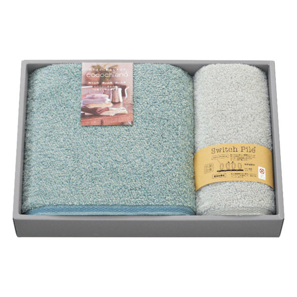 | 包装 | 包装あり | 商品仕様 | 60×120cmバスタオル1枚・34×80cmフェイスタオル1枚・綿93%・ポリエステル7% |