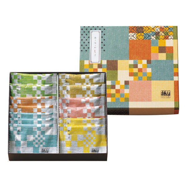 商品の特徴 ひとくちサイズのおかき6種をすべて個包装にして詰合せました。醤油・青海苔、胡麻・海老・大豆・海苔巻とバラエティに富んだいます。カラフルな化粧箱のデザインは、日本の伝統工芸「寄木細工」をイメージしています。
