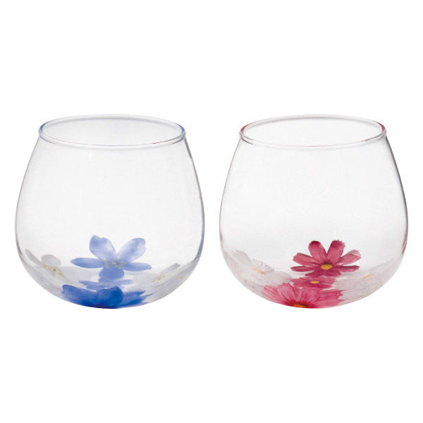直径6.5cm高さ8cm容量約320mlグラス2客(2柄)・ガラス
