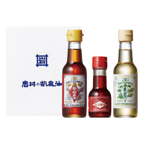 | 商品の特徴 | 創業1857年、伝統の圧搾製法にこだわる岩井の胡麻油。社名である「岩井」を「祝」に変えた特別ラベルの胡麻油と胡麻辣油をご用意しております。結婚式の縁起物やお祝いごとの贈り物におすすめです。 | ||