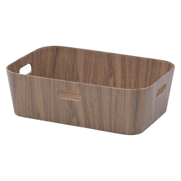 | 商品の特徴 | 木目調のペーパーボックス。紙でできているので軽量で扱いやすい。収納はもちろん、ラックに置けば引き出しのようにも使える。3箇所に取っ手付きで、棚に置いても引き出しやすく、持ち運びもしやすい。日用品やストック品などの整理に。A4用紙やA4クリアホルダーも横向きで収納可能。 | ||
