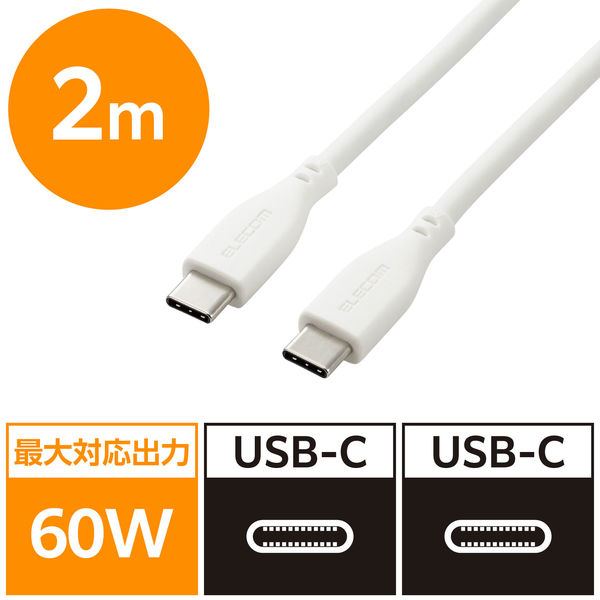 タイプCケーブル (USB-C to C) PD対応 60W 2m ホワイト MPA-CCSS20WH エレコム 1本