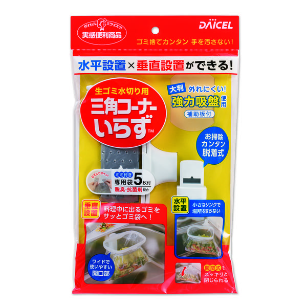 | 商品の特徴 | 手を汚さずに簡単にゴミ捨てができる水切り袋です。シンクに合わせて垂直にも水平にも設置することができます。 | ||