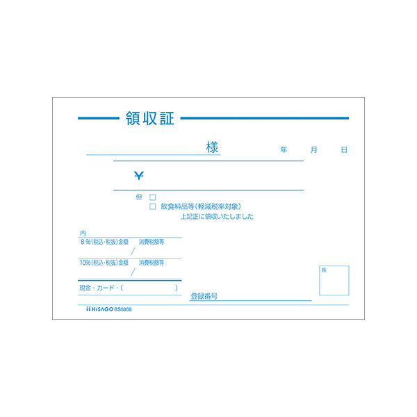本商品:ヒサゴ 領収証(単式) BS0808 1セット(20冊) |