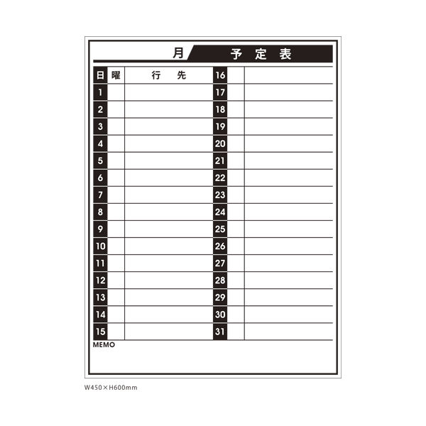 | 材質 | PET,マグネットシート | 仕様 | 月予定表 |