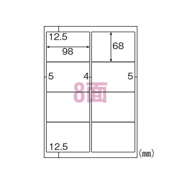 | 商品仕様 | ●規格:A4判8面●1片寸法:縦68×横98mm●紙種:上質紙●総紙厚:0.15mm | 坪量 | 144g/m2程度 |