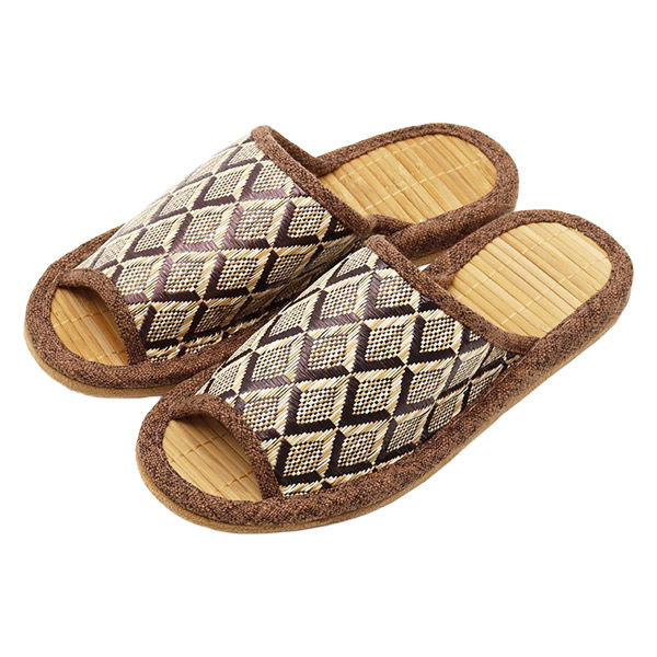 | 商品の特徴 | 編み込みで幾何学柄を表現した、アジアンテイストの竹スリッパです。 中板はサラッと竹素材を使用。素足で履いてもムレにくい、見た目も涼しげな仕上がりです。 底部分はポリエステルスエードなので、パタパタ音がしにくい小音タイプ。 | ||