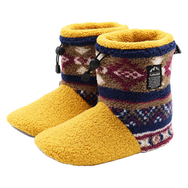 | 商品の特徴 | 足首まで包み込むフォルムで、暖かさをより追求したブーツタイプのルームシューズ。オールドアメリカスタイルを彷彿させるキリム柄がスパイスとなり、エスニックテイストをも漂わせる1足です。底材はパタパタ音が鳴りにくい、ポリエステルスエード素材を使用しております。 | ||