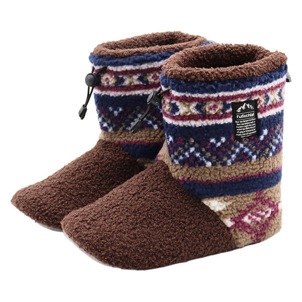 | 商品の特徴 | 足首まで包み込むフォルムで、暖かさをより追求したブーツタイプのルームシューズ。オールドアメリカスタイルを彷彿させるキリム柄がスパイスとなり、エスニックテイストをも漂わせる1足です。底材はパタパタ音が鳴りにくい、ポリエステルスエード素材を使用しております。 | ||