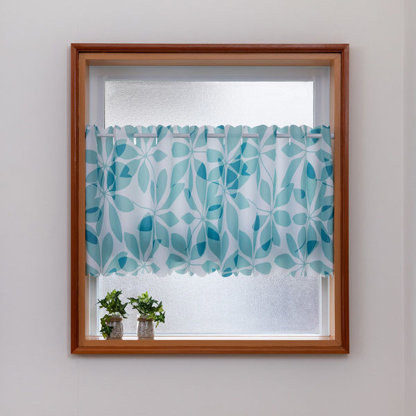 ユニベール カフェカーテン ハッスイリーフ 1450×450mm ブルー 1枚(直送品)