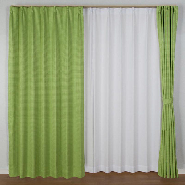 ユニベール セーブ 3級遮光カーテン 遮熱 2000×1780mm グリーン 1セット(2枚入)(直送品)