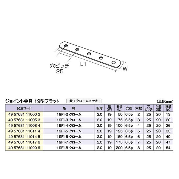 ジョイント金具 19型フラット 19FIー2 クローム 20個入 DIY・棚 1100100016002 1箱(20個入)(直送品)