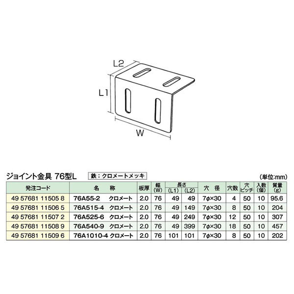 ジョイント金具 76型L 76A1010ー4 クロメート 10個 DIY・棚 1100100016206 1箱(10個入)(直送品)