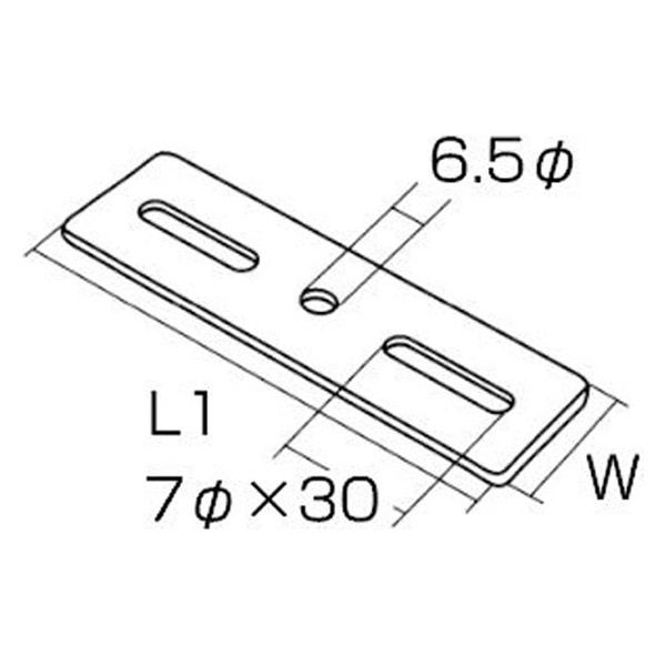 | 寸法 | 長さ(L1):100mm 幅(W):24mm 板厚:2.3mm 穴径:Φ6.5 長穴径:7Φ×30mm | 質量 | 34g |