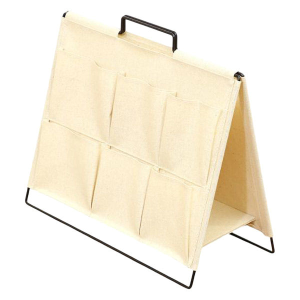 | 商品の特徴 | ごちゃついたデスク周りをすっきり整理整頓するのに便利なツールタイプの収納スタンド。片面には大きなポケット付き。ノートPCやタブレットの収納に最適です。便利な持ち手がついているので収納したままラックの移動ができます。郵便物の一時保管に。幅14cmのポケットには、ハガキ・長3号の封筒が入ります。インテリアに合わせやすいシンプルな無地デザイン。 | ||