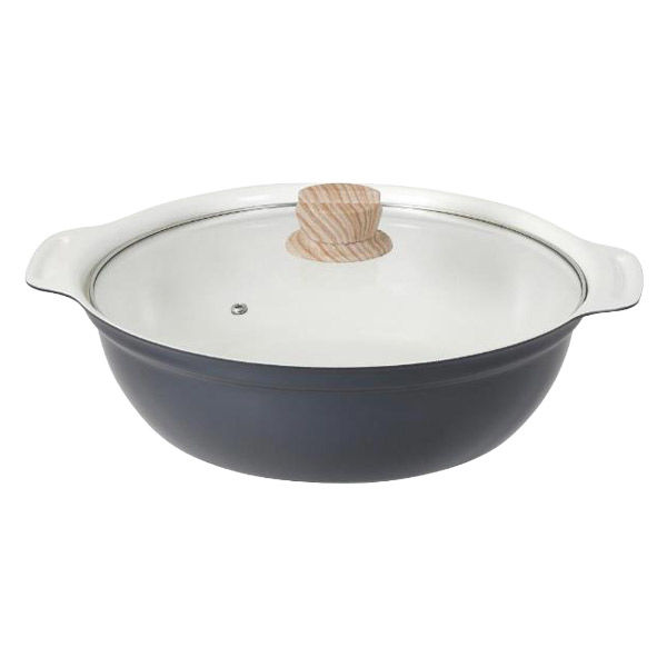 商品の特徴 熱伝導率がよい内面セラミックの両手鍋。とても軽いので、料理を運んだり洗い物もラクラク。汚れが落ちやすく、お手入れ簡単で使いやすい。木目調のつまみには菜箸やおたまが置けてとても便利です。蓋をしたまま調理の様子が確認できるガラス蓋付き。外面カラーは落ち着いたグレー。内面はスープの濃さなど、料理の色が映えやすいホワイトカラー。IH、ガス火を含むオール熱源対応。