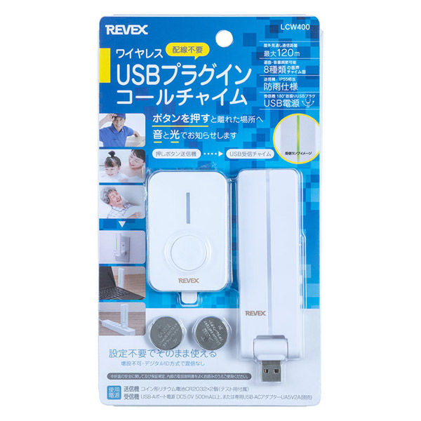 リーベックス ワイヤレスUSBプラグインコールチャイム LCW400 1個