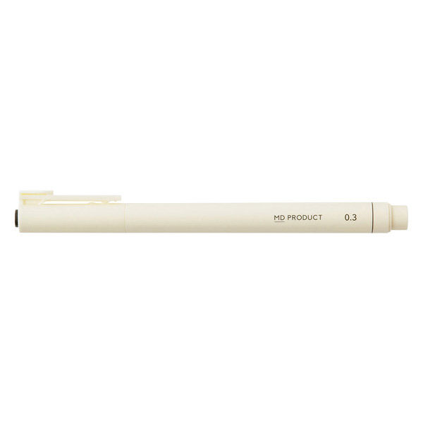 | 商品の特徴 | 水性顔料インクを使った耐水性のある0.3ミリペンが、『MDノート』にぴったりの筆記具です。普段使いにちょうどいい線幅、書く表現の幅もぐっと広がります。ペンの太さは、軸に描かれた「実線」でひと目でわかるデザインに。軸の樹脂色は、『MDノート』に似合うクリーム色。紙の色合いにやさしく溶け込み、ノートと並べたときに自然な統一感が生まれます。 | ||