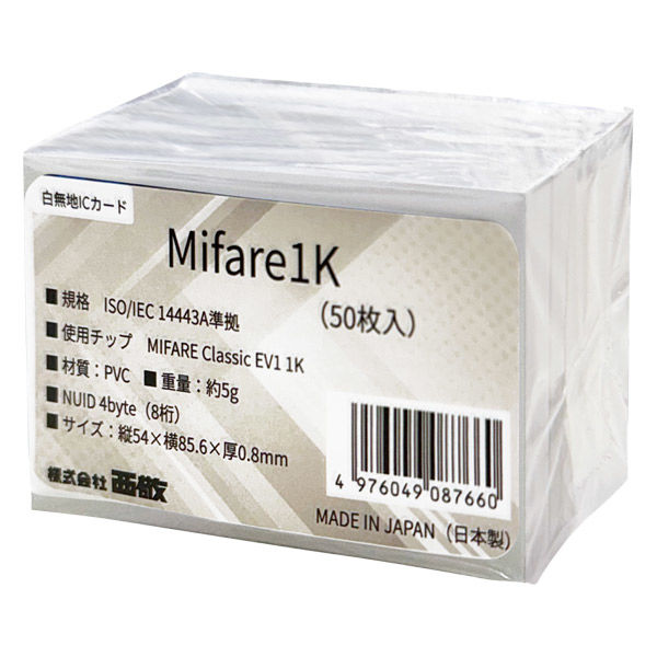 西敬 白無地ICカード(Mifare1K)50枚入 MF1K-50 1組(直送品)