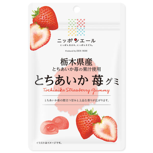 | 商品の特徴 | 栃木県産とちあいか苺の果汁を使用したグミです。とちあいか苺の際立つ甘みと上品な香りが広がります。 | ||