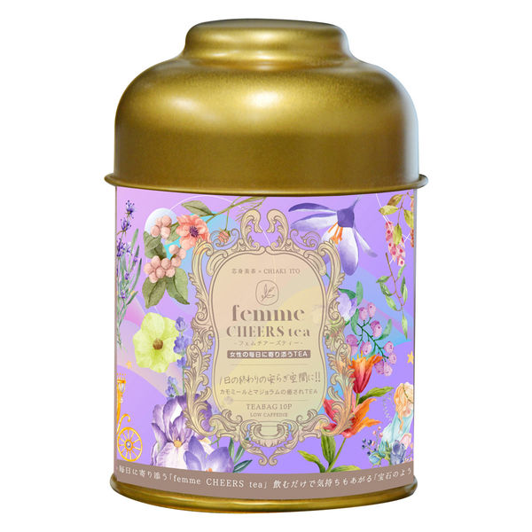 | 商品の特徴 | ●女性の毎日に寄り添うfemme CHEERS tea 1日の終わりの安らぎ空間にTEA●綺麗なパープルに癒される、宝石のようなカモミールブレンド■内容量:1.5g×10包 | ||