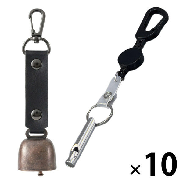 | 商品の特徴 | 【熊よけ鈴】●クマ対策の基本は「出会わないこと」。音を鳴らして存在を知らせる対策は、よく知られた方法のひとつです。山歩きはもちろん、街中での出没に備え、熊鈴は外出時に携帯しておきたいグッズです。●頑丈なステンレス製●消音マグネット付き●カラビナ付き●PUレザーを採用【ホイッスル】体力を消耗せずに周りに自分の存在を知らせることができます。●スリムで丈夫●カラビナリール小付き | ||