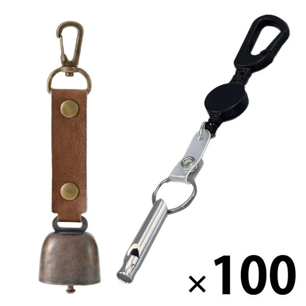 | 商品の特徴 | 【熊よけ鈴】●クマ対策の基本は「出会わないこと」。音を鳴らして存在を知らせる対策は、よく知られた方法のひとつです。山歩きはもちろん、街中での出没に備え、熊鈴は外出時に携帯しておきたいグッズです。●頑丈なステンレス製●消音マグネット付き●カラビナ付き●PUレザーを採用【ホイッスル】体力を消耗せずに周りに自分の存在を知らせることができます。●スリムで丈夫●カラビナリール小付き | ||