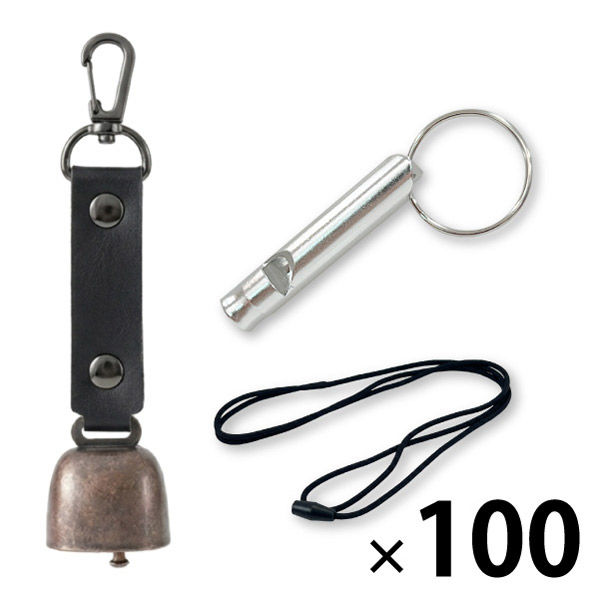 | 商品の特徴 | 【熊よけ鈴】●クマ対策の基本は「出会わないこと」。音を鳴らして存在を知らせる対策は、よく知られた方法のひとつです。山歩きはもちろん、街中での出没に備え、熊鈴は外出時に携帯しておきたいグッズです。●頑丈なステンレス製●消音マグネット付き●カラビナ付き●PUレザーを採用 【アルミホイッスル】 ●危機的状況の周知や助けを求めるとき、大きな音のする笛類は、体力を消費せずに周りに知らせることができます。 | ||
