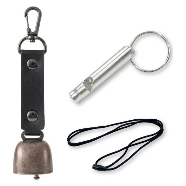 | 商品の特徴 | 【熊よけ鈴】●クマ対策の基本は「出会わないこと」。音を鳴らして存在を知らせる対策は、よく知られた方法のひとつです。山歩きはもちろん、街中での出没に備え、熊鈴は外出時に携帯しておきたいグッズです。●頑丈なステンレス製●消音マグネット付き●カラビナ付き●PUレザーを採用 【アルミホイッスル】 ●危機的状況の周知や助けを求めるとき、大きな音のする笛類は、体力を消費せずに周りに知らせることができます。 | ||