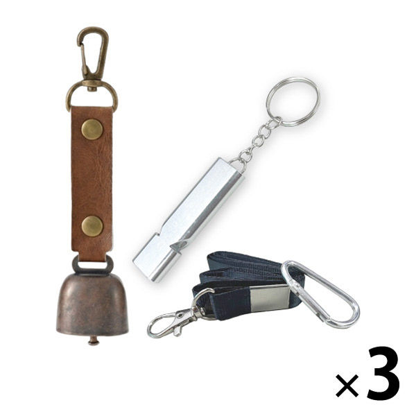 | 商品の特徴 | 【熊よけ鈴】●クマ対策の基本は「出会わないこと」。音を鳴らして存在を知らせる対策は、よく知られた方法のひとつです。山歩きはもちろん、街中での出没に備え、熊鈴は外出時に携帯しておきたいグッズです。●頑丈なステンレス製●消音マグネット付き●カラビナ付き●PUレザーを採用 【アルミホイッスル】 ●危機的状況の周知や助けを求めるとき、大きな音のする笛類は、体力を消費せずに周りに知らせることができます。 | ||