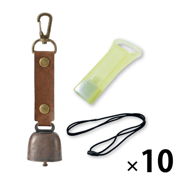 | 寸法 | ●熊よけ鈴:(約)縦14cm×横幅3.5cm×奥行2.5cm●蓄光エマージェンシーホイッスル:(約)20mm×横幅47.7mm●安全ネックストラップ:全長 (約) 950mm / 輪の状態での長さ (約) 470mm | ネックストラップ | ストラップ付きなので 普段から身に着けることができ 緊急時、声を出すのが困難な 状況でも助けを求める事が 可能です。強く引っ張られると自動的に外れ、予期せぬ 事故を防止できます。 |