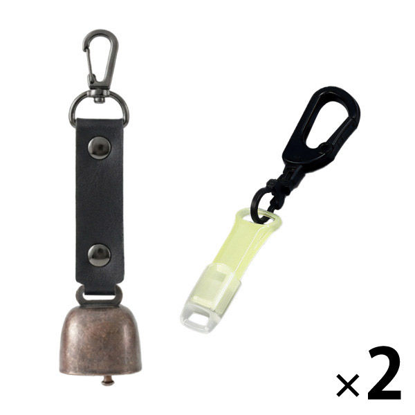 | 商品の特徴 | 【熊よけ鈴】●クマ対策の基本は「出会わないこと」。音を鳴らして存在を知らせる対策は、よく知られた方法のひとつです。山歩きはもちろん、街中での出没に備え、熊鈴は外出時に携帯しておきたいグッズです。●頑丈なステンレス製●消音マグネット付き●カラビナ付き●PUレザーを採用【蓄光エマージェンシーホイッスル】体力を消耗せずに周りに自分の存在を知らせることができます。●スリムで丈夫●人の耳に聞こえやすいとされる3000HZ・95db●暗い場所でも光る蓄光タイプ●キャップ・カラビナリング付き | ||