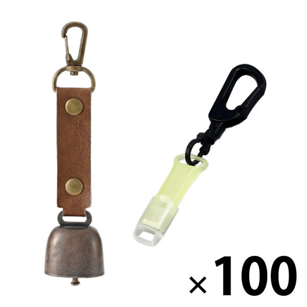 | 商品の特徴 | 【熊よけ鈴】●クマ対策の基本は「出会わないこと」。音を鳴らして存在を知らせる対策は、よく知られた方法のひとつです。山歩きはもちろん、街中での出没に備え、熊鈴は外出時に携帯しておきたいグッズです。●頑丈なステンレス製●消音マグネット付き●カラビナ付き●PUレザーを採用【蓄光エマージェンシーホイッスル】体力を消耗せずに周りに自分の存在を知らせることができます。●スリムで丈夫●人の耳に聞こえやすいとされる3000HZ・95db●暗い場所でも光る蓄光タイプ●キャップ・カラビナリング付き | ||