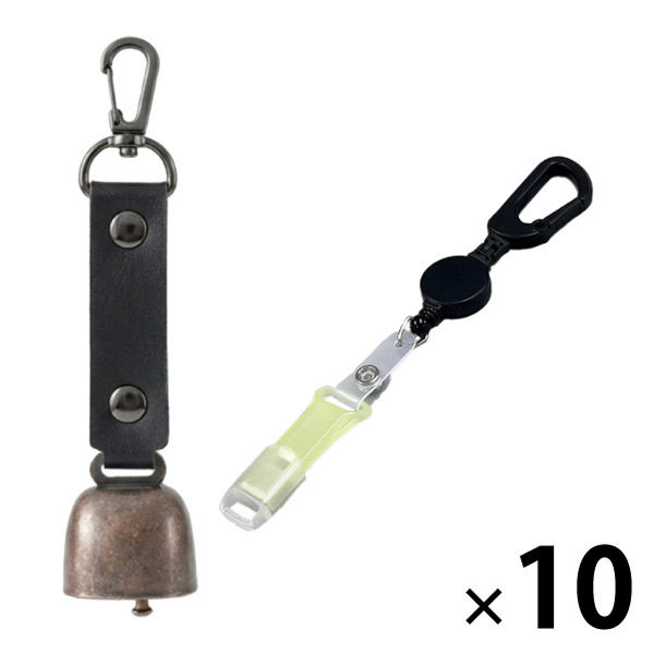 | 商品の特徴 | 【熊よけ鈴】●クマ対策の基本は「出会わないこと」。音を鳴らして存在を知らせる対策は、よく知られた方法のひとつです。山歩きはもちろん、街中での出没に備え、熊鈴は外出時に携帯しておきたいグッズです。●頑丈なステンレス製●消音マグネット付き●カラビナ付き●PUレザーを採用 【蓄光エマージェンシーホイッスル】:蓄光グリーンは光をためて光るタイプ、薄型でかさばりません。危険な状況の周知や助けを求めるとき、大きな音のする笛類は 体力を消費せずに周りに知らせることができます。 | ||