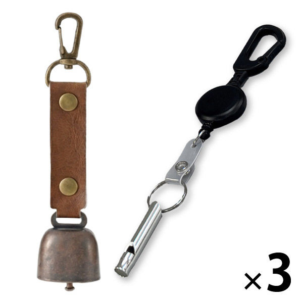 | 商品の特徴 | 【熊よけ鈴】●クマ対策の基本は「出会わないこと」。音を鳴らして存在を知らせる対策は、よく知られた方法のひとつです。山歩きはもちろん、街中での出没に備え、熊鈴は外出時に携帯しておきたいグッズです。●頑丈なステンレス製●消音マグネット付き●カラビナ付き●PUレザーを採用 【アルミホイッスル】 ●危機的状況の周知や助けを求めるとき、大きな音のする笛類は、体力を消費せずに周りに知らせることができます。 | ||