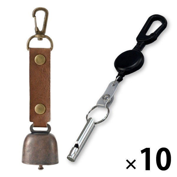 | 商品の特徴 | 【熊よけ鈴】●クマ対策の基本は「出会わないこと」。音を鳴らして存在を知らせる対策は、よく知られた方法のひとつです。山歩きはもちろん、街中での出没に備え、熊鈴は外出時に携帯しておきたいグッズです。●頑丈なステンレス製●消音マグネット付き●カラビナ付き●PUレザーを採用 【アルミホイッスル】 ●危機的状況の周知や助けを求めるとき、大きな音のする笛類は、体力を消費せずに周りに知らせることができます。 | ||