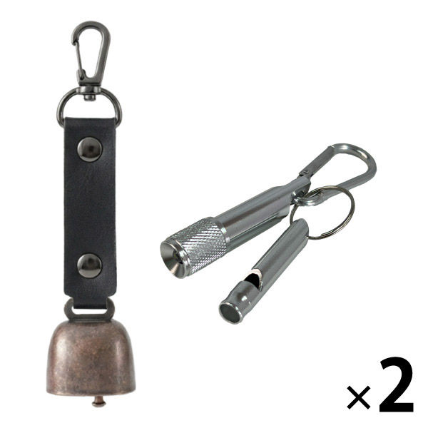 | 商品の特徴 | 【熊よけ鈴】●クマ対策の基本は「出会わないこと」。音を鳴らして存在を知らせる対策は、よく知られた方法のひとつです。山歩きはもちろん、街中での出没に備え、熊鈴は外出時に携帯しておきたいグッズです。●頑丈なステンレス製●消音マグネット付き●カラビナ付き●PUレザーを採用 【ミニアルミLEDライト】●軽量コンパクトなので、鍵やバッグに取り付け可能。様々なシーンで活躍します。 【アルミホイッスル】 ●危機的状況の周知や助けを求めるとき、大きな音のする笛類は、体力を消費せずに周りに知らせることができます。 | ||