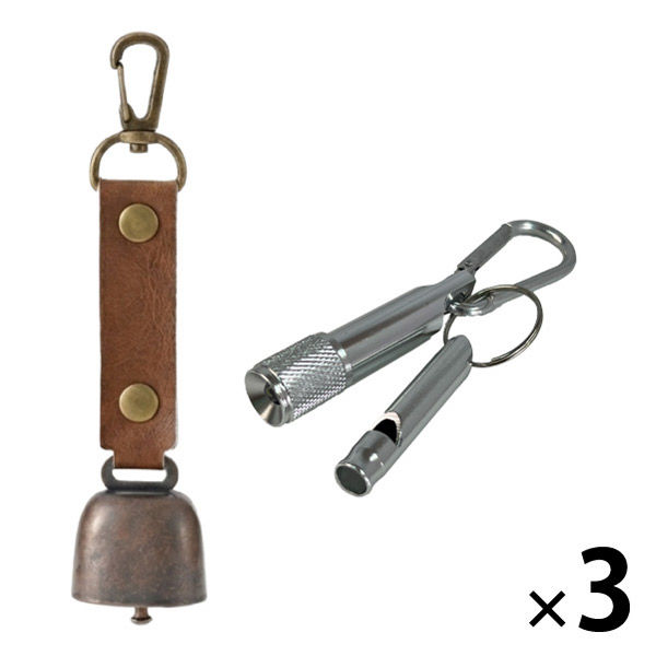 | 商品の特徴 | 【熊よけ鈴】●クマ対策の基本は「出会わないこと」。音を鳴らして存在を知らせる対策は、よく知られた方法のひとつです。山歩きはもちろん、街中での出没に備え、熊鈴は外出時に携帯しておきたいグッズです。●頑丈なステンレス製●消音マグネット付き●カラビナ付き●PUレザーを採用 【ミニアルミLEDライト】●軽量コンパクトなので、鍵やバッグに取り付け可能。様々なシーンで活躍します。 【アルミホイッスル】 ●危機的状況の周知や助けを求めるとき、大きな音のする笛類は、体力を消費せずに周りに知らせることができます。 | ||