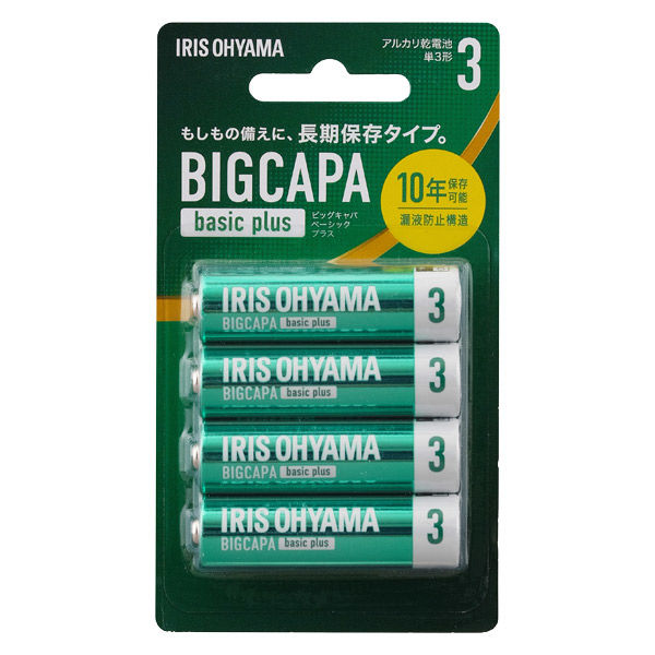 アイリスオーヤマ BIGCAPA basic plus アルカリ乾電池 単3形 4本パック LR6Bbp/4B 1セット(144個入)(直送品)