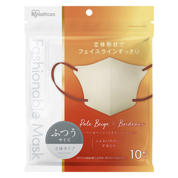 アイリスオーヤマ FASHIONABLE MASK 立体 ふつう 10枚入 ペール×ボルドー RN-FA10SUF 1箱(180袋入)(直送品)