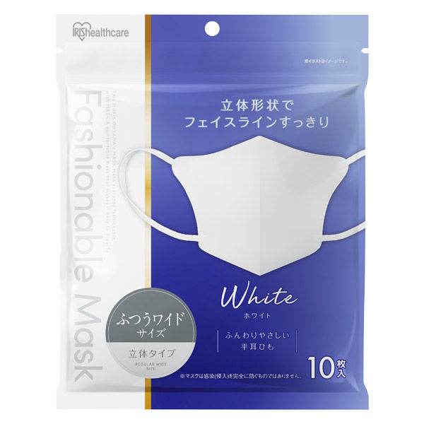 アイリスオーヤマ FASHIONABLE MASK 立体 ふつうワイド 10枚入 ホワイト RN-FA10MW 1箱(180袋入)(直送品)