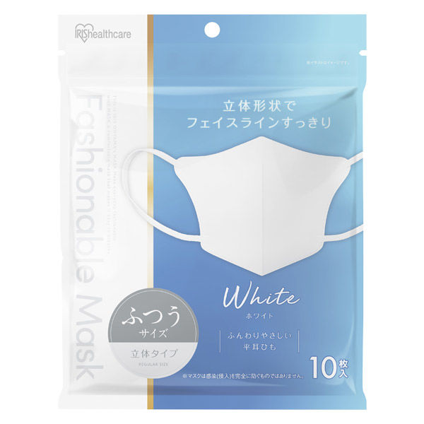 アイリスオーヤマ FASHIONABLE MASK 立体 ふつう 10枚入 ホワイト RN-FA10SW 1箱(180袋入)(直送品)