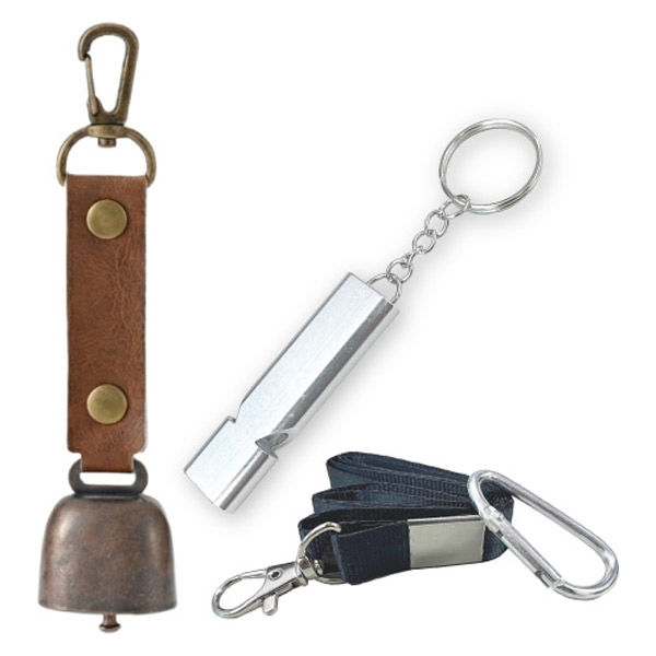 | 商品の特徴 | 【熊よけ鈴】●クマ対策の基本は「出会わないこと」。音を鳴らして存在を知らせる対策は、よく知られた方法のひとつです。山歩きはもちろん、街中での出没に備え、熊鈴は外出時に携帯しておきたいグッズです。●頑丈なステンレス製●消音マグネット付き●カラビナ付き●PUレザーを採用 【アルミホイッスル】 ●危機的状況の周知や助けを求めるとき、大きな音のする笛類は、体力を消費せずに周りに知らせることができます。 | ||