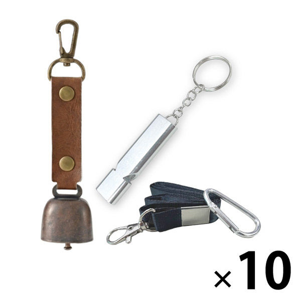 | 商品の特徴 | 【熊よけ鈴】●クマ対策の基本は「出会わないこと」。音を鳴らして存在を知らせる対策は、よく知られた方法のひとつです。山歩きはもちろん、街中での出没に備え、熊鈴は外出時に携帯しておきたいグッズです。●頑丈なステンレス製●消音マグネット付き●カラビナ付き●PUレザーを採用 【アルミホイッスル】 ●危機的状況の周知や助けを求めるとき、大きな音のする笛類は、体力を消費せずに周りに知らせることができます。 | ||